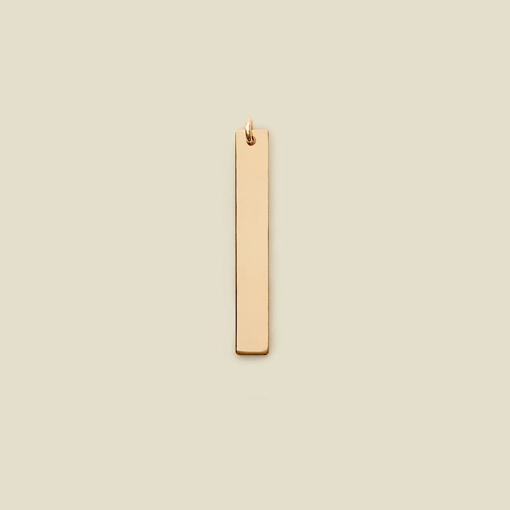 A beautiful way to carry your most treasured moments with you no matter where you go, the bar pendant is a dreamy memento. Customize your 1.25″ gold f