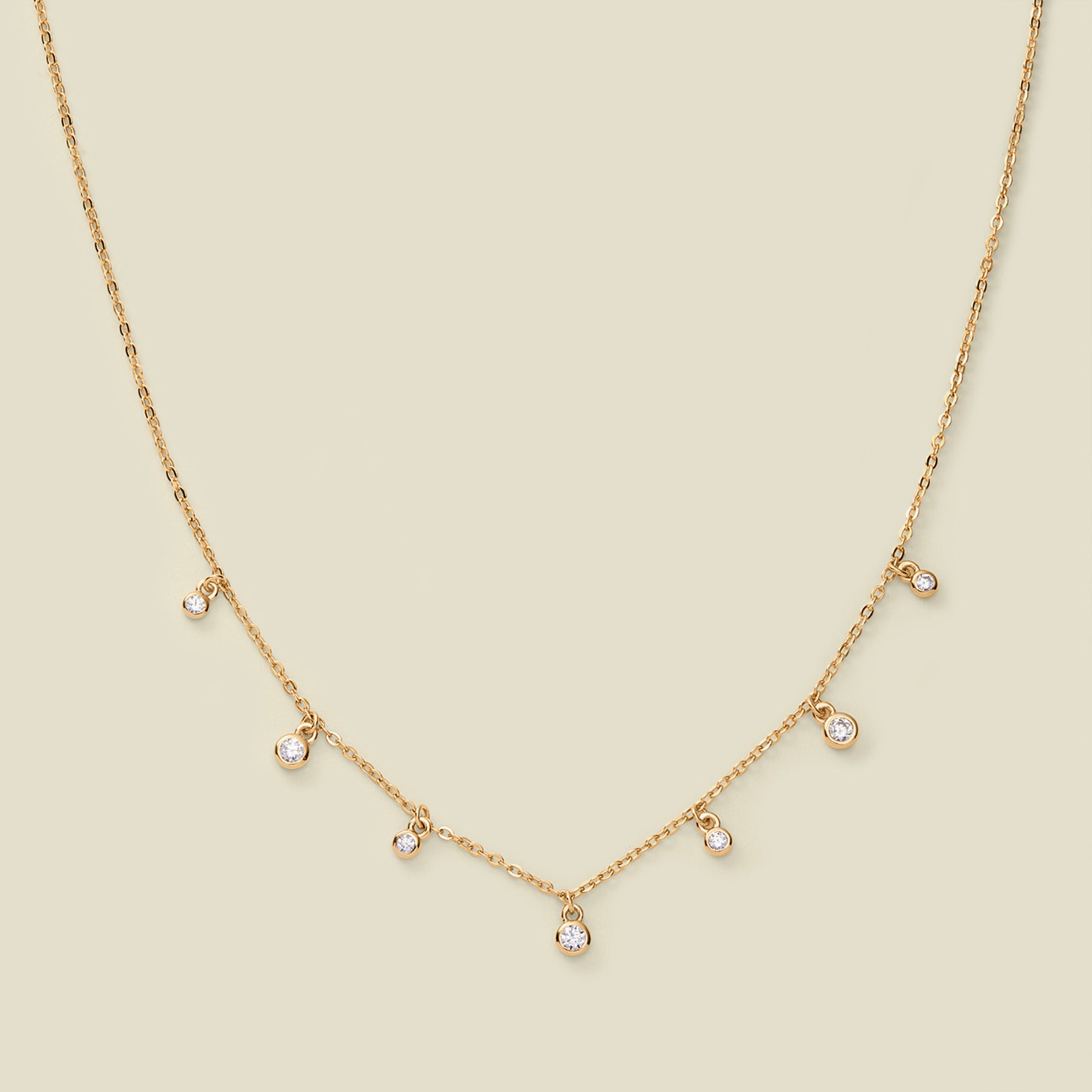This barely-there necklace features a delicate strand of spaced-out CZs that seem to float effortlessly along your neckline. Simple, elegant, and just
