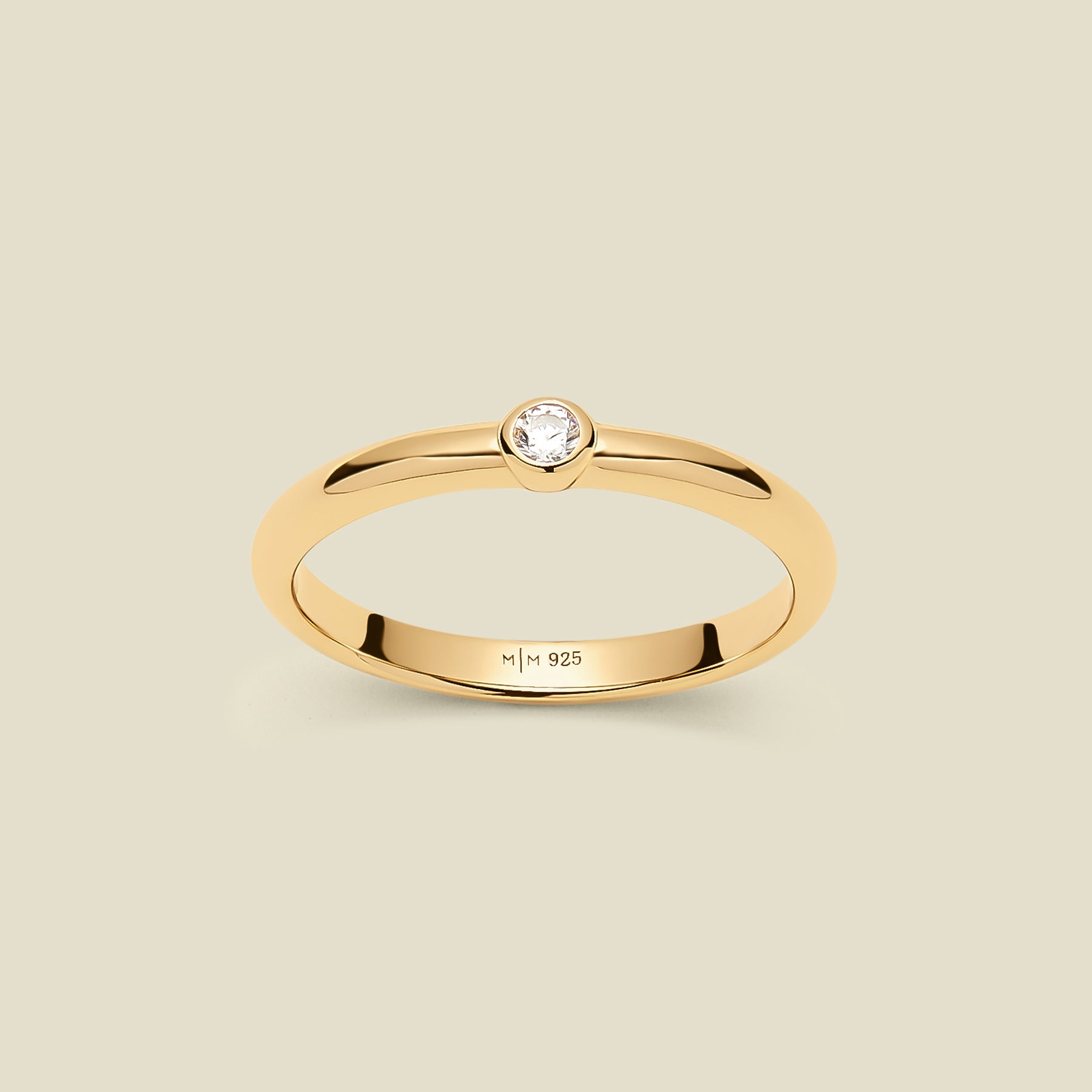 Meet your new signature shimmer. With a single bezel-set CZ on a slender gold band, this solitaire ring adds the kind of quiet shimmer that makes ever